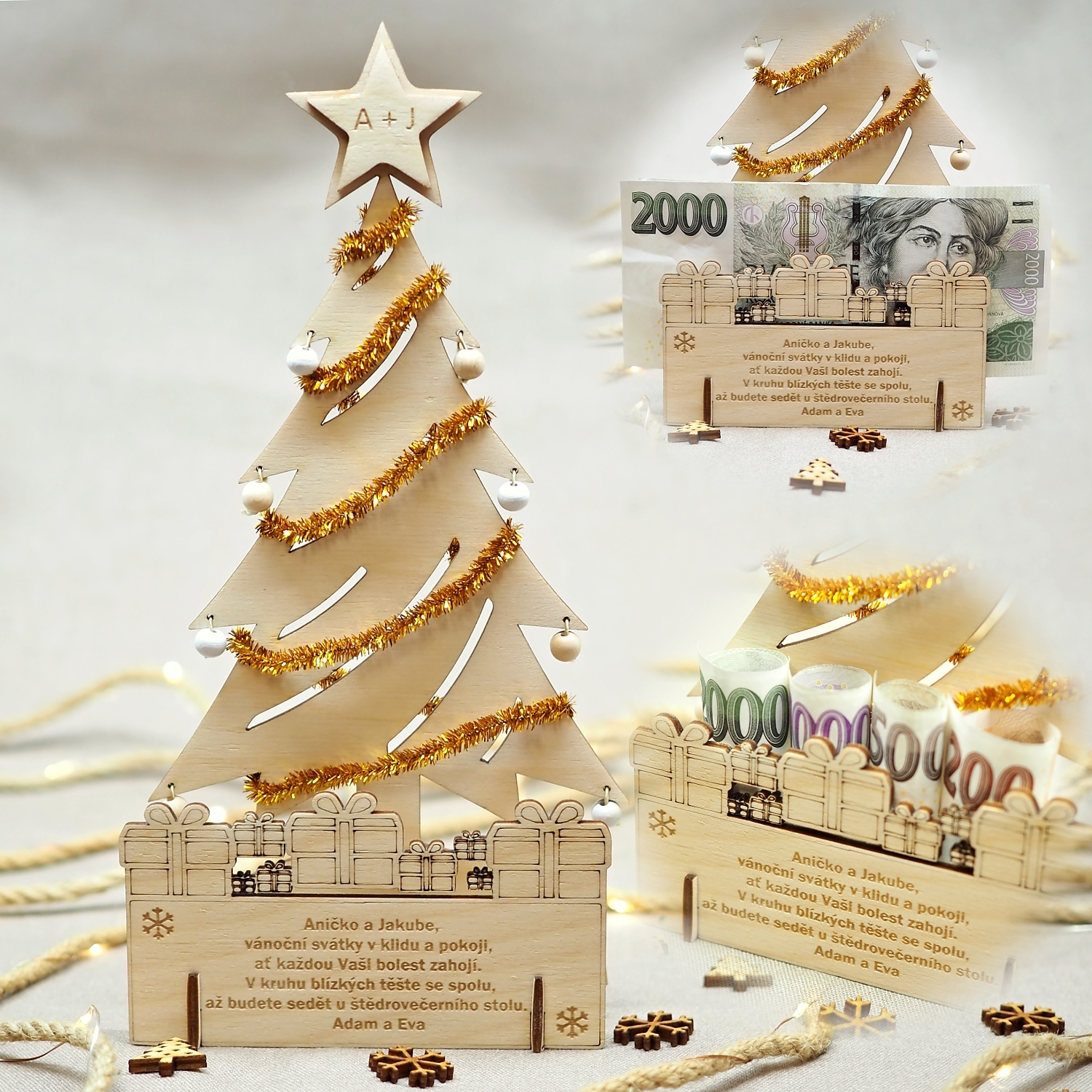 Dřevěný vánoční stromek – 3D, gravírovaný a s vlastním textem
