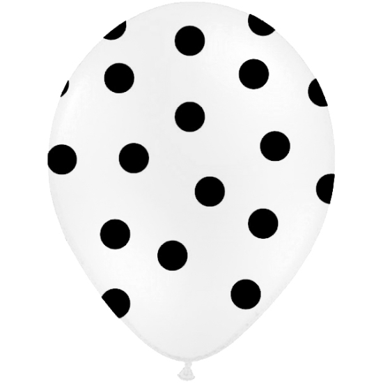 Balónky latexové – bílé s černými puntíky (30 cm, 6 kusů)
