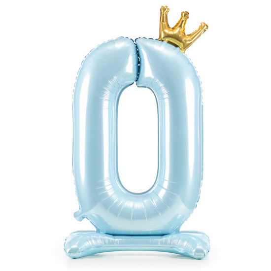 Balónek č. 0 – modrý, stojící, s korunkou (fóliový, 84 cm)