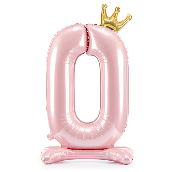 Balónek č. 0 – růžový, stojící, s korunkou (fóliový, 84 cm)