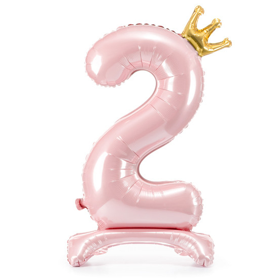 Balónek č. 2 – růžový, stojící, s korunkou (fóliový, 84 cm)