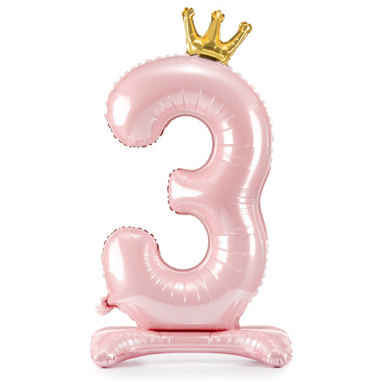 Balónek č. 3 – růžový, stojící, s korunkou (fóliový, 84 cm)