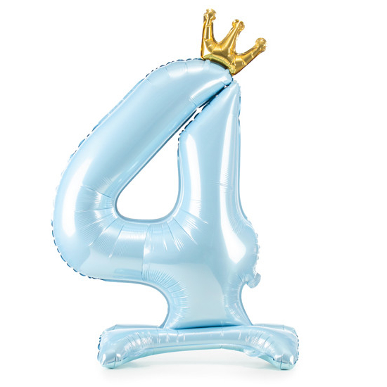 Balónek č. 4 – modrý, stojící, s korunkou (fóliový, 84 cm)