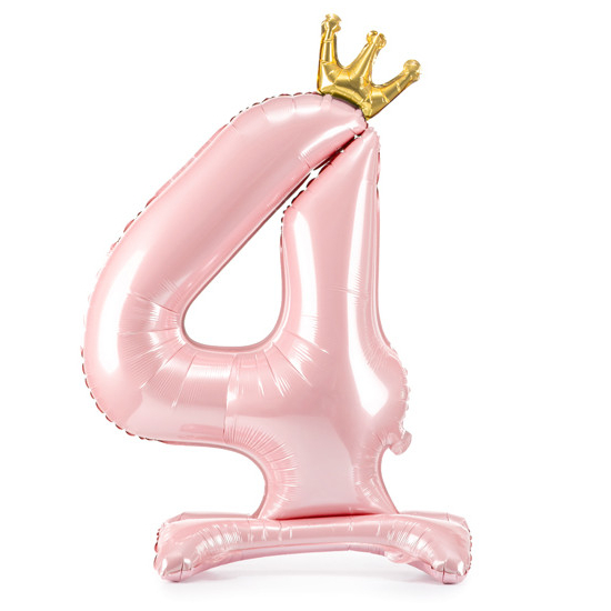 Balónek č. 4 – růžový, stojící, s korunkou (fóliový, 84 cm)