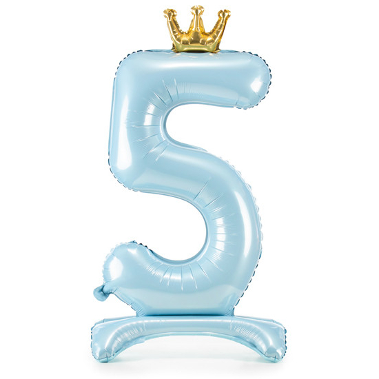 Balónek č. 5 – modrý, stojící, s korunkou (fóliový, 84 cm)