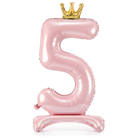 Balónek č. 5 – růžový, stojící, s korunkou (fóliový, 84 cm)