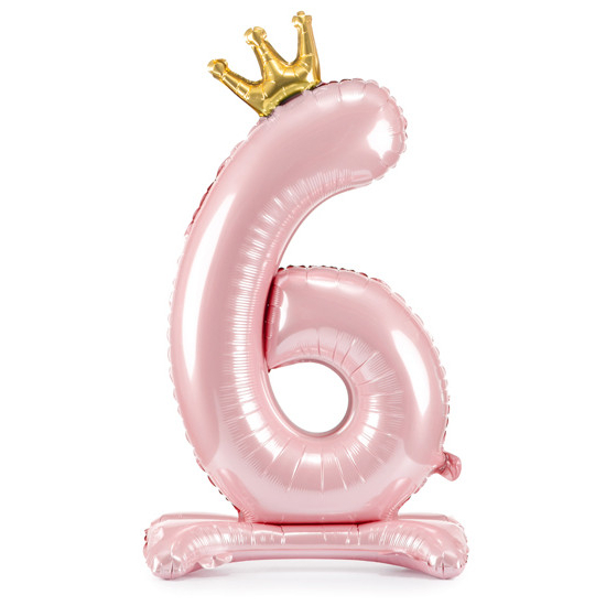 Balónek č. 6 – růžový, stojící, s korunkou (fóliový, 84 cm)