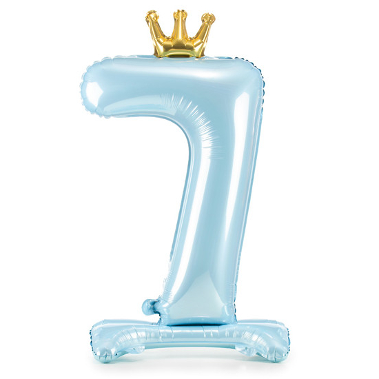Balónek č. 7 – modrý, stojící, s korunkou (fóliový, 84 cm)