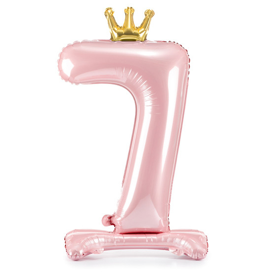 Balónek č. 7 – růžový, stojící, s korunkou (fóliový, 84 cm)