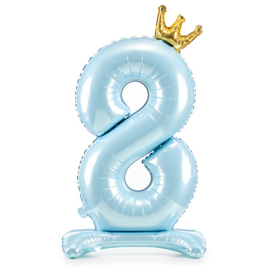 Balónek č. 8 – modrý, stojící, s korunkou (fóliový, 84 cm)