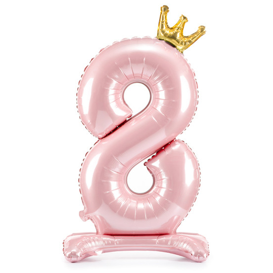 Balónek č. 8 – růžový, stojící, s korunkou (fóliový, 84 cm)